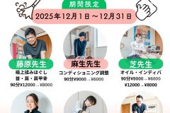 初回でほぼ症状が改善してしまうことも珍しくはありませんが、こうして3回続けて経過を聞かせていただくことで、当てずっぽうの施術ではなく、経験に基づいて、患者さまの姿勢・体質、回復力や生活習慣など、お体を不調にしている原因を解明し、より早く改善していくことができます。3回目終了時の体調に合わせ、担当スタッフより今後の施術方針の説明があります。(学生等、予約3回原則に当てはまらない場合もあります。)