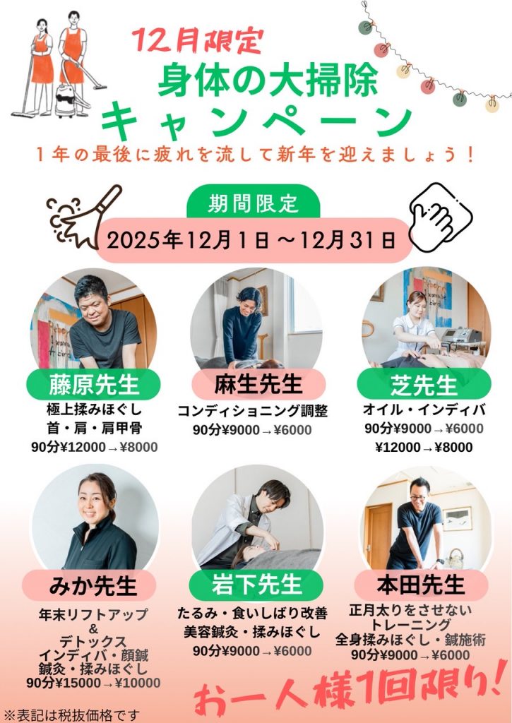・120分施術 通常 12,000円(税抜) → 9,000円(税抜)